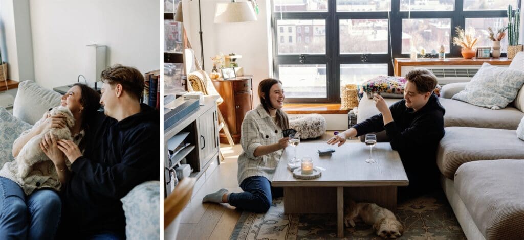 And finally, we’re back at home! Having your session in the comfort of your own home is such a wonderful way to bring some intimacy and personality to your photographs. Photographing you in your own space, whether thats playing a card game or video game, lounging on the couch, or cooking together can create images that are honest and unique to you and your partner.