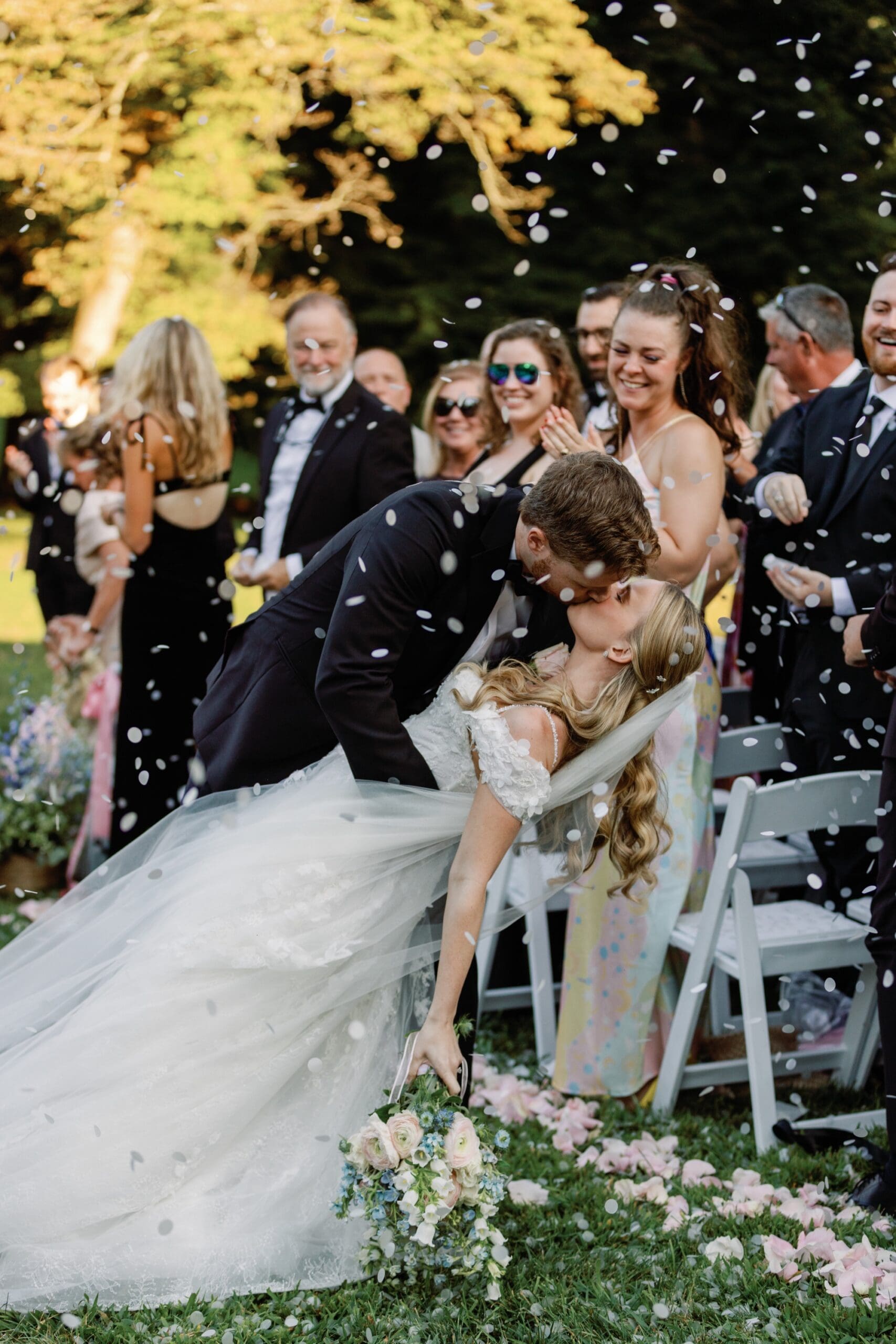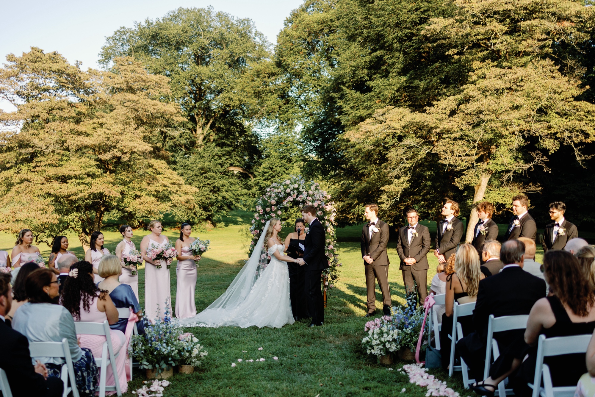 Their outdoor ceremony took place with Lyndhurst Mansion as the backdrop, with vows that had everyone tearing up. Alexa and Girault met at summer camp, and that forever-young kind of love showed up in every part of the day.