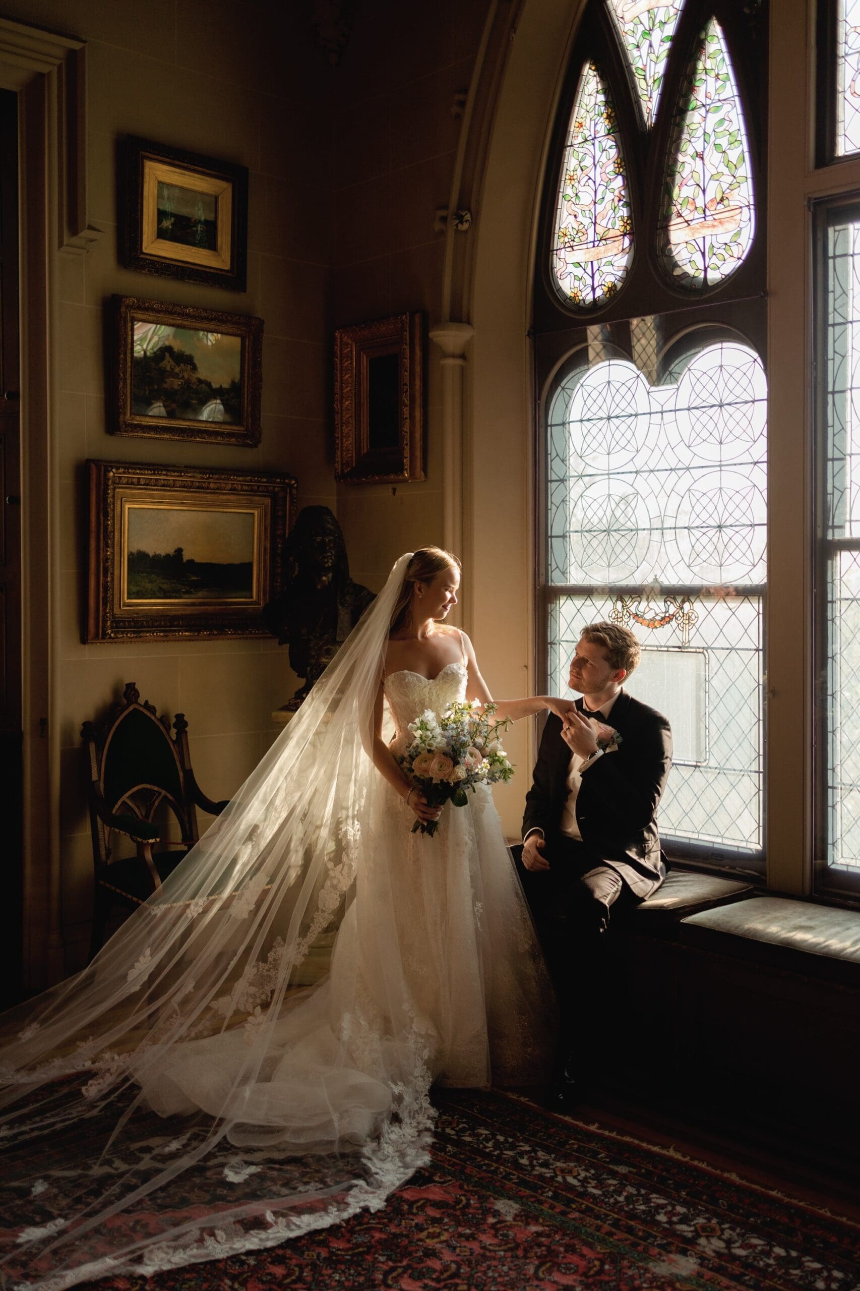 After the ceremony, we were escorted into the portrait room, where the light completely stopped me in my tracks. Sunlight poured through the windows in a way I’ve never seen before, creating some of my favorite wedding portraits of the entire day and truly showcasing why Lyndhurst Mansion is such a stunning wedding venue to photograph. Easily my favorite images from the day!